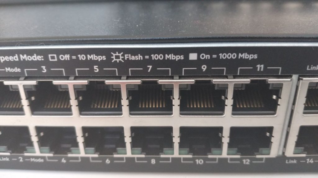 Esempio di switch da 1000MB al secondo. Con "Link/Act:Green" si intende: "Se il cavo e collegato e la lucina resta sempre accesa"