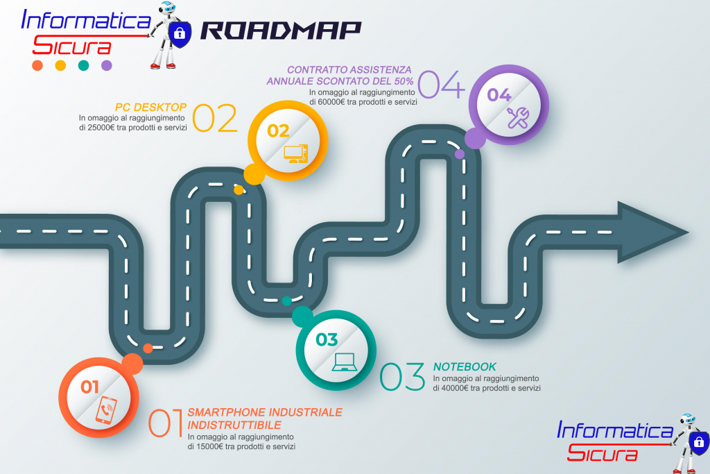 Perchè abbiamo deciso di realizzare un percorso a premi?Abbiamo deciso di realizzare una Roadmap (tabella di marcia) per ringraziarti della fiducia e del supporto nei nostri confronti, in quanto ci aiutano a crescere e a migliorare, in modo da offrirti sempre il Top della qualità sui prodotti e i serviziNon è richiesta nessuna registrazione per partecipare!Il Team di Informatica Sicura si occuperà di tenere traccia di dove ti trovi all'interno del percorso, calcolando le spese/acquisti che hai effettuato da inizio 2022! Non ti resterà che impegnarti al massimo per "tagliare il traguardo" per primo, per ricevere un ulteriore incredibile premio misterioso.Hai delle domande da farci sulla Roadmap?CONTATTACI ORA... Se vuoi sapere il premio misterioso, quello rimarrà un segreto!