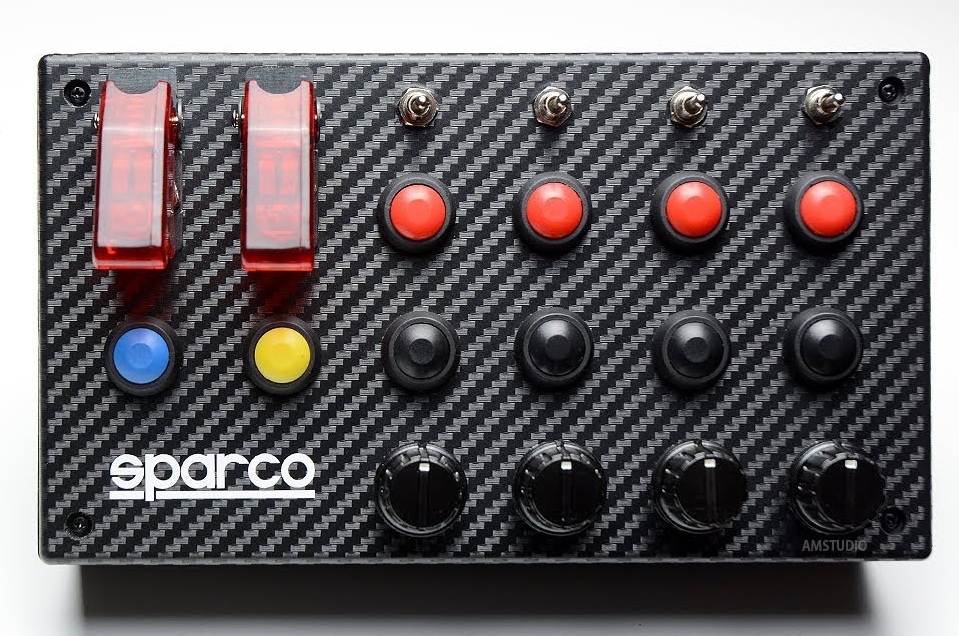Letteralmente tradotto significa "scatola dei pulsanti", ma non si tratta di una semplice scatola ma molto di più.Una button box è composta da un insieme di componenti elettriche: diodi led, interruttori, potenziometri e pulsanti alle quali può essere assegnata un specifica funzione presente su un simulatore di guida.per esempio alla pressione di un tasto si può accende il veicolo, ad un altro i tergicristalli ed a un altro ancora i fari dell'auto.A CHE COSA SERVE?